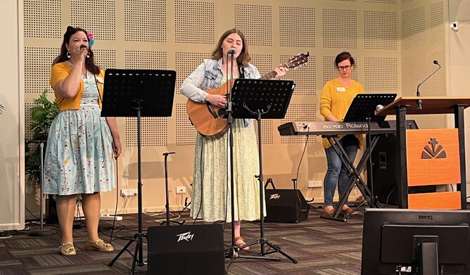 After such an honest and hope-filled morning, it was a joy to fellowship together over a delicious lunch provided by the women at Village Avenue CC where we had gathered. We are so grateful too, for the music team from VACC, who led us in worship, and for the women from Kuraby CC who once again brought goodies and crafts for us to buy, with all the money being distributed among the speakers we had heard during the day. Similarly, we thank Gordon Cowell for organising the bookshop whose profits were donated to the Train the Trainers Fund through AMT. AMT has generously matched the amount, doubling its impact.
