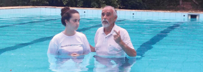 On Sunday 17 December 2017, we had our Annual Fellowship End-of-Year Christmas Party at Camp Bethel, and Gary had the privilege of baptising seven candidates — six young people and one adult — in the pool at Camp Bethel. Gary was very emotional as some of the young people whom he was baptising were the third generation, he having baptised the grandmother, Dona Isabel, at the beginning of the work. It was a very emotional time for us all, and in the morning Giovanni, who led the meeting, gave the opportunity for testimonies. There were some incredible testimonies of what God has done in the lives of the members of the Jardim Santana Assembly during this past year. including in the life of Dinalva. She has been liberated from demon possession, which was a very hard battle, and she came to know the Lord as her Saviour. She and her daughter Giovanna were baptised, but we are still praying for the conversion of her husband Marcos, who comes out to all the Sunday night meetings but has not made a profession of faith yet. Carol Becari is finishing law school and very active in the Jardim Santana church. She was the first to be saved in her family was saved and baptized about seven years ago. She never gave up on praying for the salvation of her family, and neither did we as a church. God is faithful — we must never give up praying for the salvation of our loved ones.