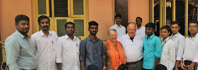 Who are we to be so blessed and able to give thanks for His faithfulness and support and support of the Assemblies and of His people? Praise be to Him for what He has done with us and others. He opened many doors of opportunity, but we had many adversaries. We have travelled four times around Australia and five times half-way around, and many visits up and down the Southern and Eastern States. We have also done ministry during six visits to Tamil Nadu State in India. Through gifts from Australian Assemblies and individuals, help has been given for buildings, motorbikes, scooters and accordions for evangelists and the dear saints there.